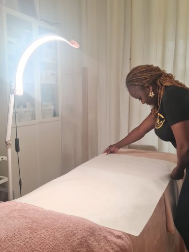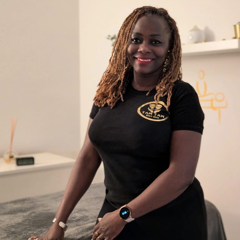 Ma mère m’a transmis l’art du massage d’inspiration africaine, ce savoir-faire ancestral qui invite à relâcher le corps et apaiser l’esprit. C’est auprès d’elle que j’ai appris à faire du toucher un langage, du soin un moment sacré.